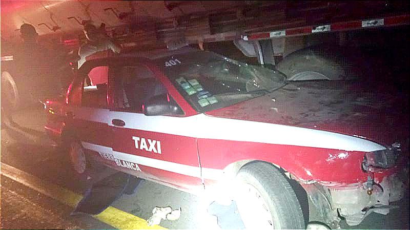 El operador perdió el control y embistió al taxi Nissan Tsuru número 401 de Tierra Blanca, donde viajaban seis personas, quienes resultaron heridos, dos estaban prensados en el auto de alquiler.