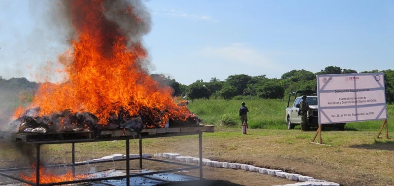 Un cargamento de 257 kilogramos de droga y 44 objetos del delito fueron incinerados por la Fiscalía General de la República (FGR), en la Delegación Veracruz, en coordinación con la Secretaría de Marina (SEMAR), el evento se realizó en la Base Aeronaval Las Bajadas.