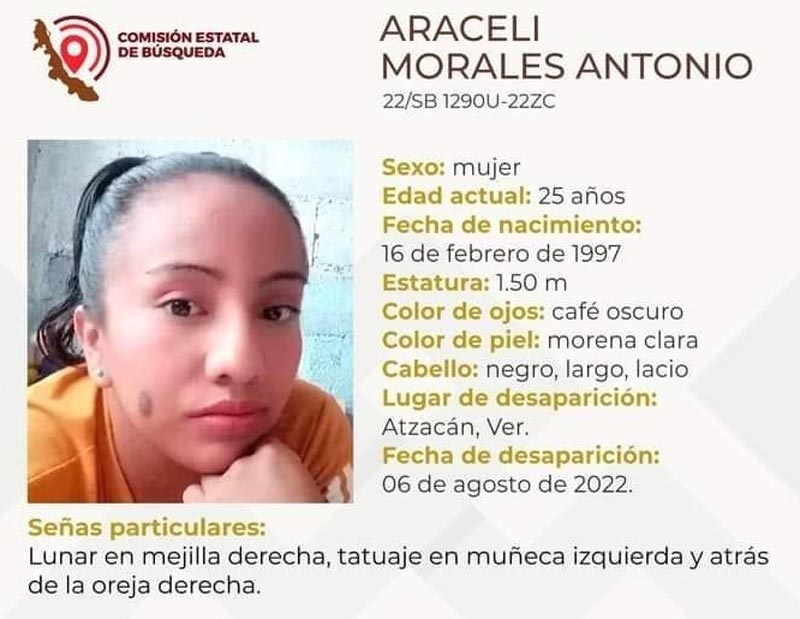 Cabe recordar que, Araceli Morales Antonio de 25 años y con domicilio en la Colonia Centro de Atzacan, fue secuestrada el sábado 6 de agosto del 2022, y sus plagiarios pidieron una fuerte suma de dinero en efectivo a cambio de su libertad con vida; rescate que fue pagado por su familia, pero aun así no fue liberada.