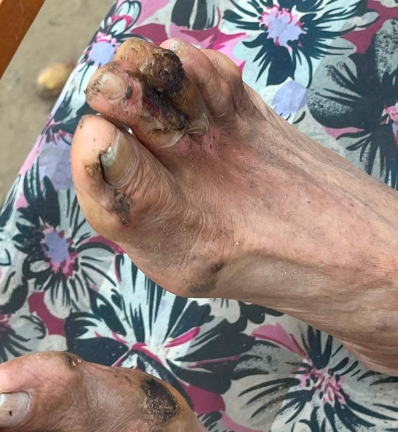 El impacto lo derribó, causándole severas quemaduras.
