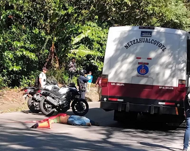 Un peatón murió al ser arrollado por dos autobuses sobre la carretera Coatepec-Xico, tramo San Marcos de León-Zimpizahua, municipio de Coatepec.