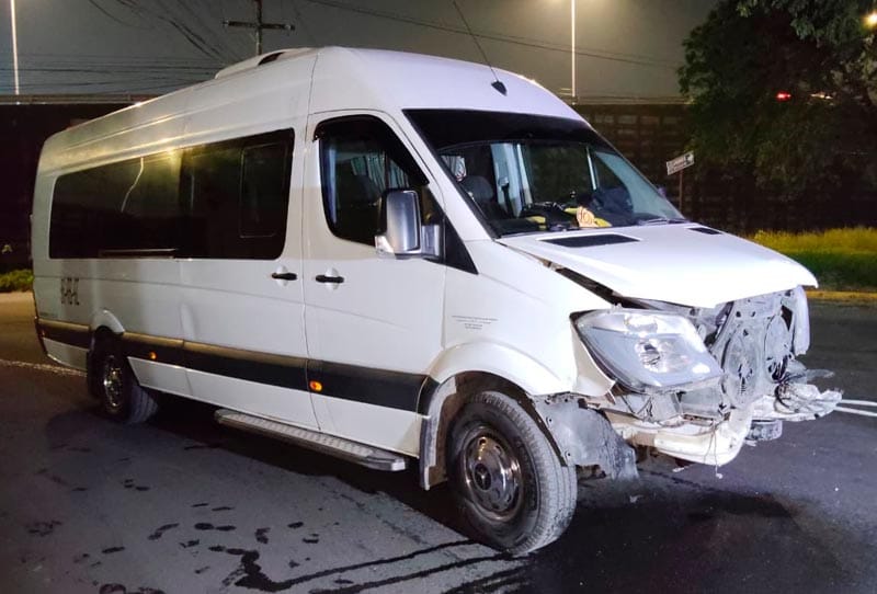 Ahí iba circulando a gran velocidad una camioneta tipo van, de color blanco, con razón social Servicios Ejecutivos y Turísticos del Puerto, cuyo operador no se percató que estaba estacionado un carro marca Nissan, tipo Tsuru, del servicio de taxi, económico VB-3350.