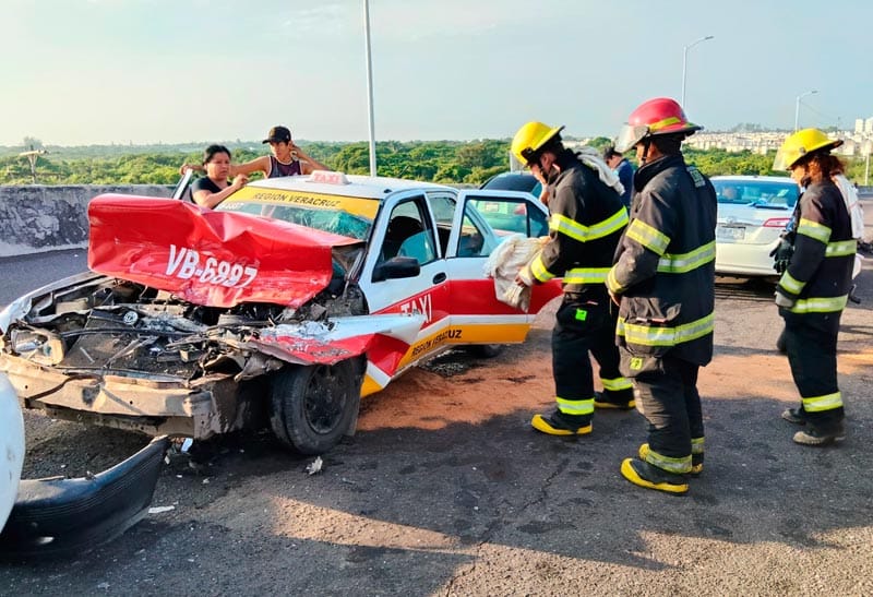 A la altura del puente de Inbursa del fraccionamiento Nuevo Veracruz, este fin de semana, hubo un accidente donde un taxista resultó con graves lesiones tras impactarse de frente contra un camión urbano.