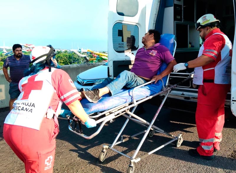 El taxista presentó golpes severos en la cabeza, pecho y piernas y fue auxiliado en primera instancia por el propio chofer del autobús, hasta que llegaron paramédicos de la Cruz Roja.