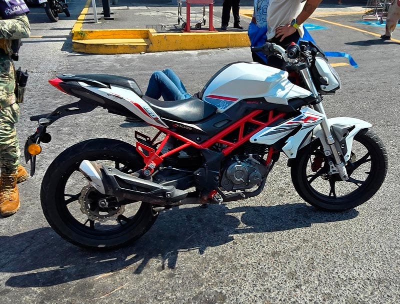 Mientras que en el carril de sur a norte iba en la avenida Miguel Ángel de Quevedo, una motocicleta, de la marca Benelli 150, de color blanco.