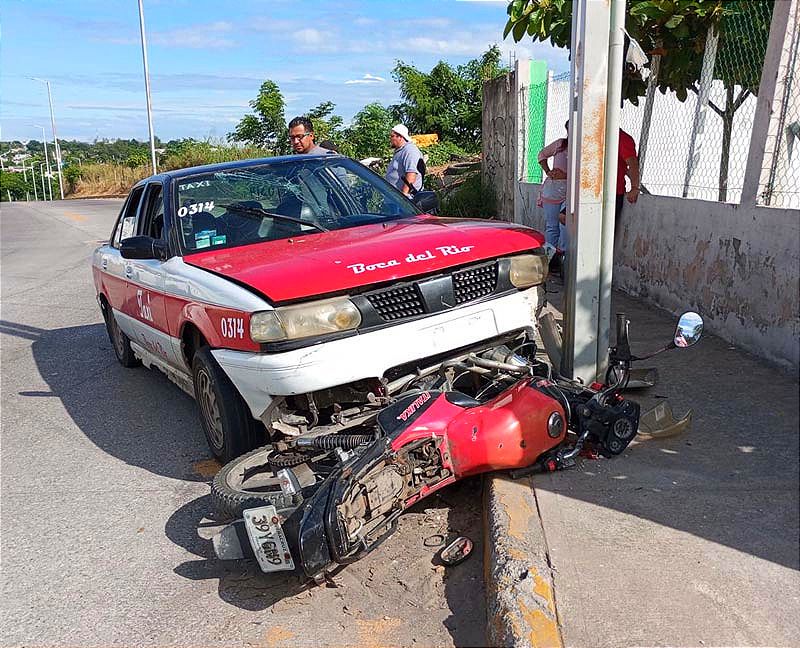 José Z. C., de 31 años de edad, iba con dirección a la zona norte en la avenida Azalea y en el cruce de la calle Amapola, el taxista a bordo de la unidad, económico 0314, impactó al motorizado.
