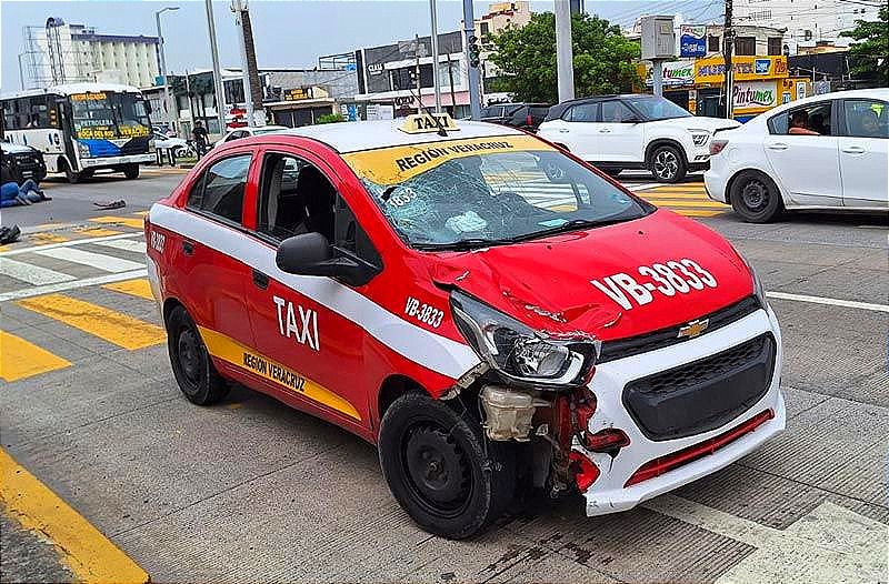 Al cambiar a verde, el motociclista reinició la marcha y en ese momento se le atravesó circulando por Mar de Cortés el taxi Chevrolet número VB-3833, que conducía un hombre de avanzada edad.