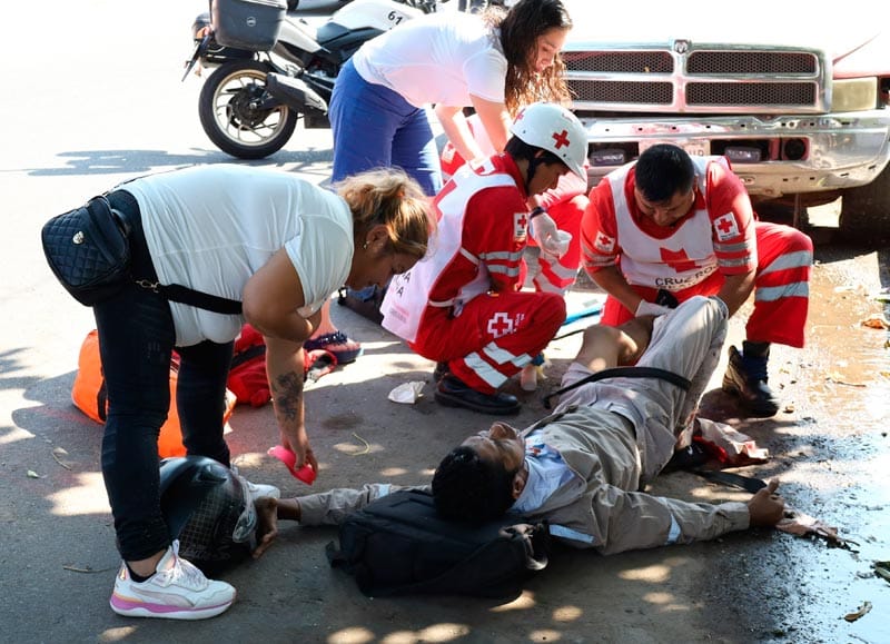 En calles de la colonia Niños Héroes, en la ciudad de Veracruz, un motociclista sufrió fracturas en la pierna izquierda al chocar contra un taxi, generando la presencia de los cuerpos de emergencia y Agentes de Tránsito.