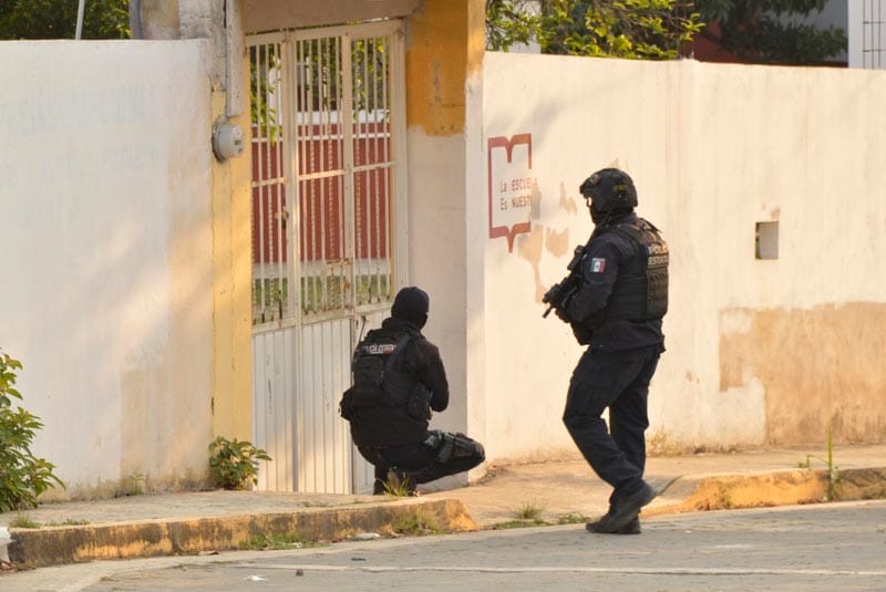 Instantes después se escucharon detonaciones de arma de fuego justo en el inmueble, se trataba de civiles que disparaban en contra de elementos de la SSP, generándose un enfrentamiento a balazos entre uniformados y civiles.