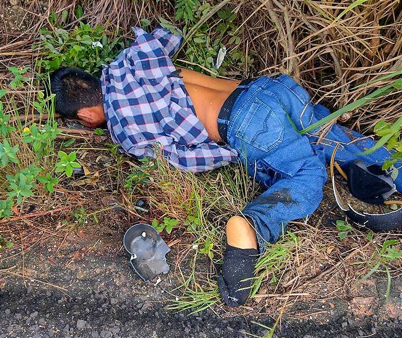 Sobre la superficie de rodamiento se encontraba el cadáver de un hombre, con camisa de manga larga a cuadros y pantalón de mezclilla azul, además a unos metros estaba siniestrada una motocicleta Italika color negro.