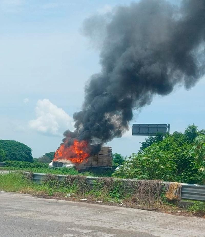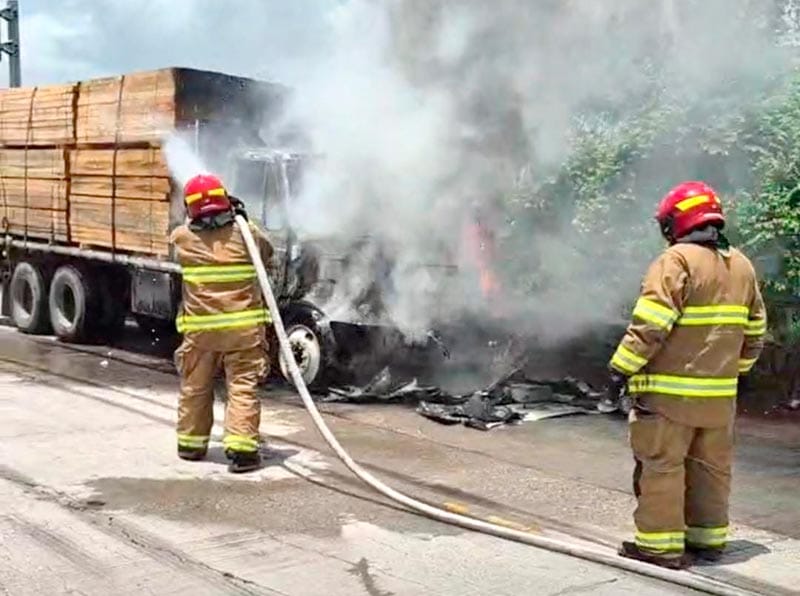 El siniestro ocurrió a escasos metros del entronque con la mencionada vía federal,, al norponiente de esta ciudad, cuando la unidad que transportaba madera comenzó a arder parcialmente, poniendo en riesgo tanto al conductor como la carga.