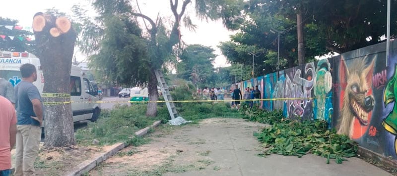 De acuerdo con testigos, al terminar la poda de un árbol, la herramienta que utilizaba tocó accidentalmente cables de alta tensión, provocando una fuerte descarga que lo hizo caer desde una escalera de aproximadamente cinco metros de altura.