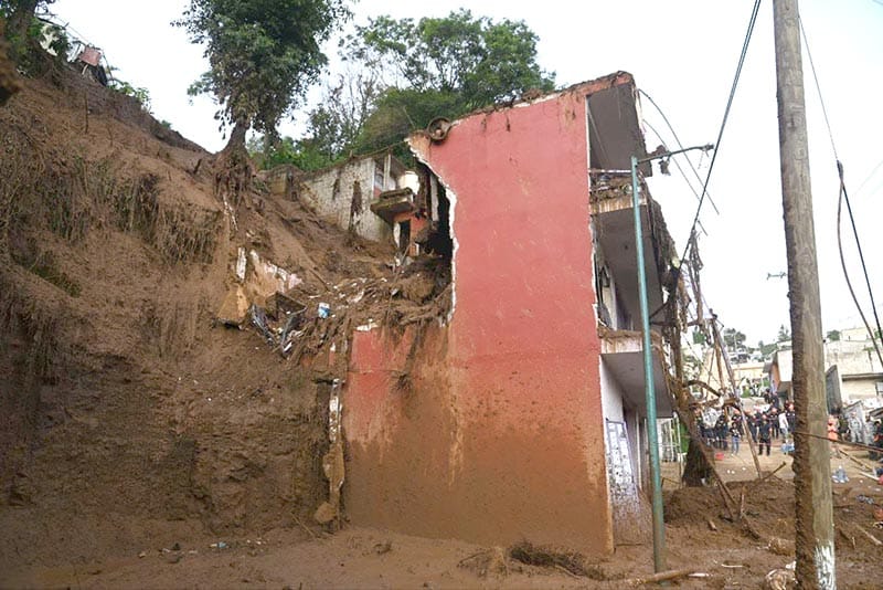 Un deslave registrado en un cerro generó un alud de tierra y lodo que sepultó una vivienda en la colonia 9 de Abril, en Xalapa, muriendo tres personas, una era bebé, las labores de rescate de los cuerpos se prolongaron por seis horas.
