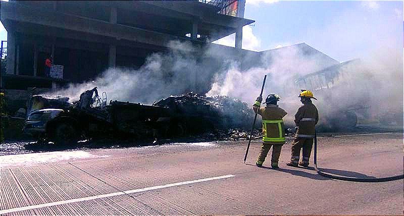 El fuego se propagó a la carga y eso complicó el combate del fuego, pues la mercancía que transportaba era aceite vegetal, per media hora después se logró sofocar el fuego.