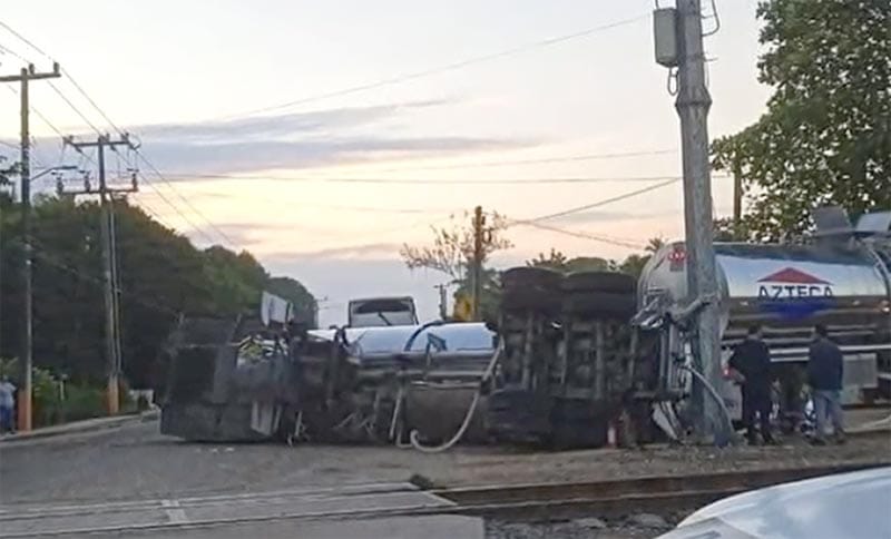 A las 06:00 horas, un tractocamión acoplado a doble semirremolque de tipo cisterna circulaba con dirección a Chinameca y, al llegar al crucero ferroviario denominado La Estación, el operador no se detuvo.