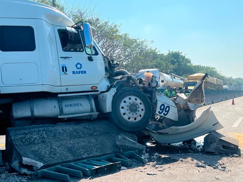 En la carretera federal Paso del Toro–Santa Fe, a la altura del tramo comprendido entre Dos Lomas y Santa Rita, dentro del municipio de Veracruz, hubo un fuerte percance dejando como saldo cuantiosos daños materiales y una persona lesionada.