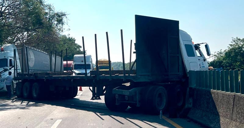 El tráiler terminó impactándose contra el muro divisorio de los carriles.
