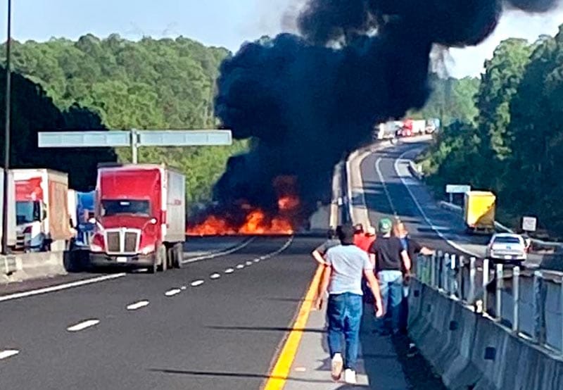 *Testigos reportaron que un tractocamión quedo envuelto en llamas sobre el libramiento Xalapa