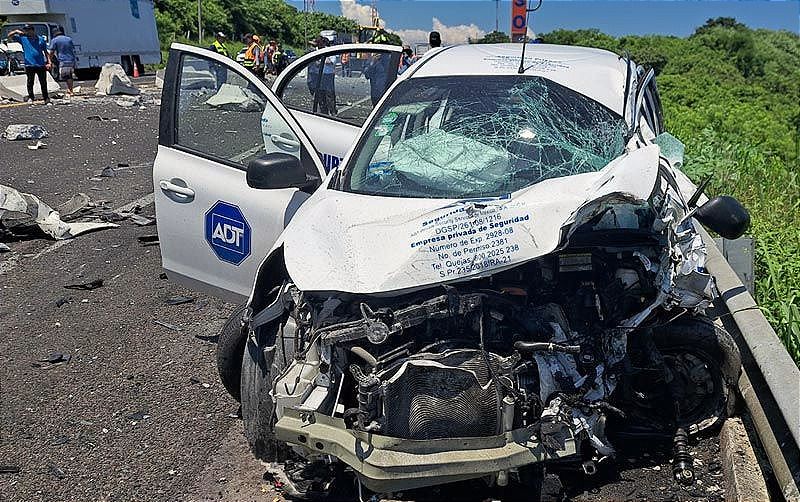La pesada unidad invadió el carril contrario de Veracruz a Cardel, y acabó colisionando contra un automóvil marca Nissan, tipo March, de la empresa de seguridad privada ADT, quedando lesionado el conductor, Javier Bartolomé N.