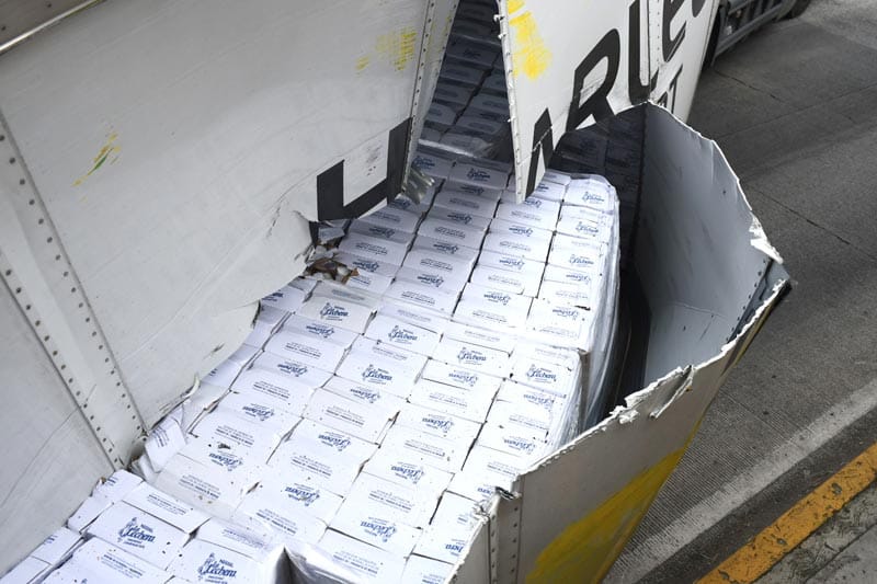 *La caja seca quedó al descubierto y la carga consistente en cajas de productos lácteos (La Lechera)