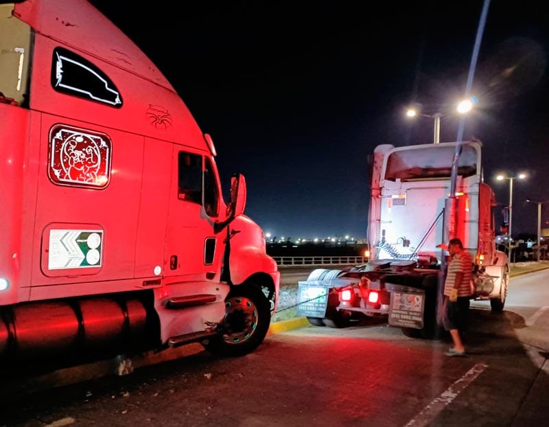 A la altura del acceso a la zona de San Juan de Ulúa, al norte de la ciudad de Veracruz, el operador de una unidad de carga perdió el control y terminó subiéndose al camellón central dejando daños materiales y caos vial.