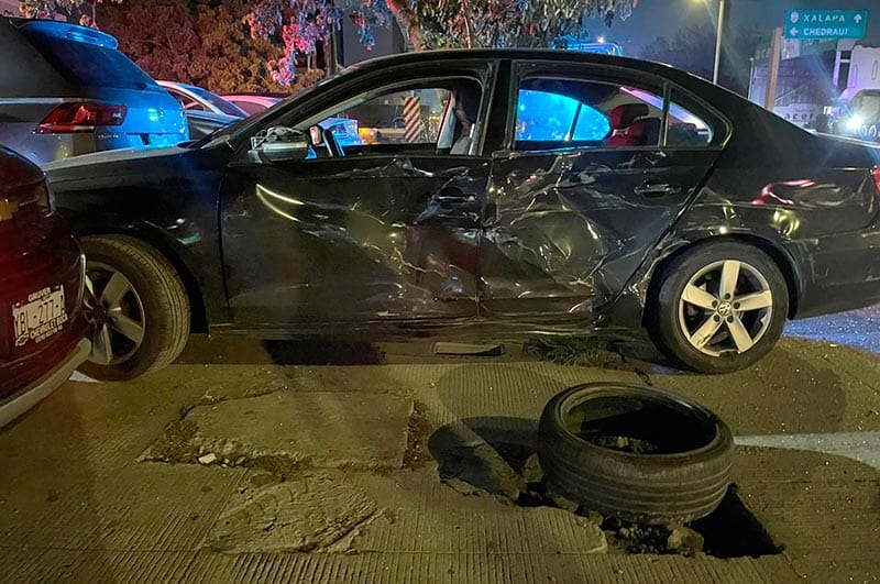 En la avenida Rafael Cuervo, al norte de la ciudad de Veracruz, un carro Jetta fue arrastrado por un tráiler, desde el semáforo de Chedraui Las Brisas, hasta el negocio de venta de Pizza Hut, dejando cuantiosos daños a otros dos vehículos estacionados.