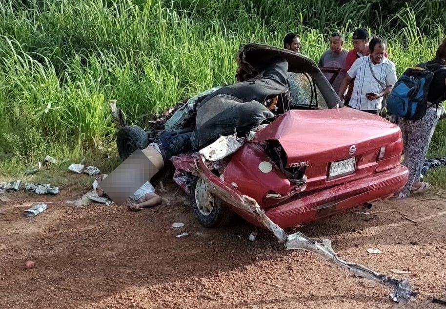 Dos personas muertas y tres lesionados fue el saldo del trágico accidente ocurrido el martes sobre carretera federal 145, tramo Isla-Rodríguez Clara, donde un automóvil Nissan Tsuru fue embestido brutalmente por un tráiler acoplado a semirremolque tipo plataforma.