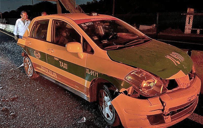 Por la colisión el taxi salió proyectado hacia enfrente, chocando por alcance contra un carro, de la marca Ford, tipo Fiesta, donde viajaba una familia que para la ciudad de Xalapa.