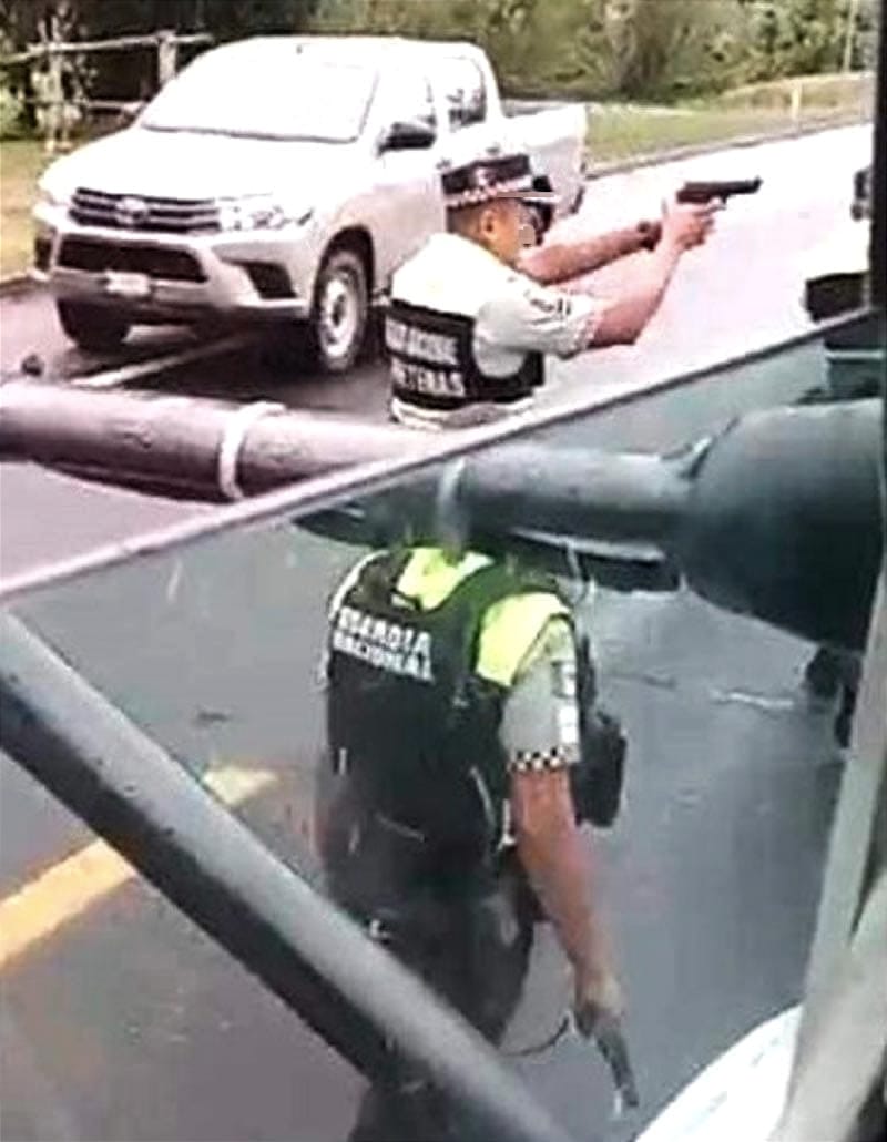 Al momento que huían, los tripulantes del Kia dispararon contra agentes de la Guardia Nacional (GN) y los federales repelieron la agresión, generándose una balacera en plena autopista.