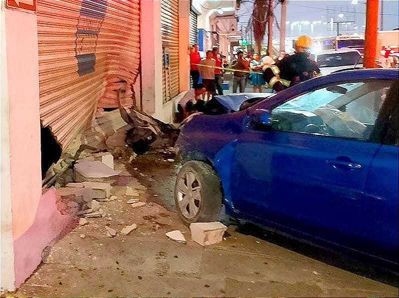 Al llegar al cruce de la mencionada calle, chocó contra un edificio aparentemente abandonado, causando daños en las cortinas de acero.