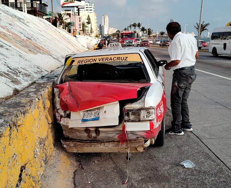 Y, frente al Infonavit El Morro, la camioneta embistió por alcance a un taxi Nissan Tsuru número económico VB-1607, proyectándolo como 40 metros, quedando esa unidad con la parte de atrás desbaratada y en el acotamiento.
