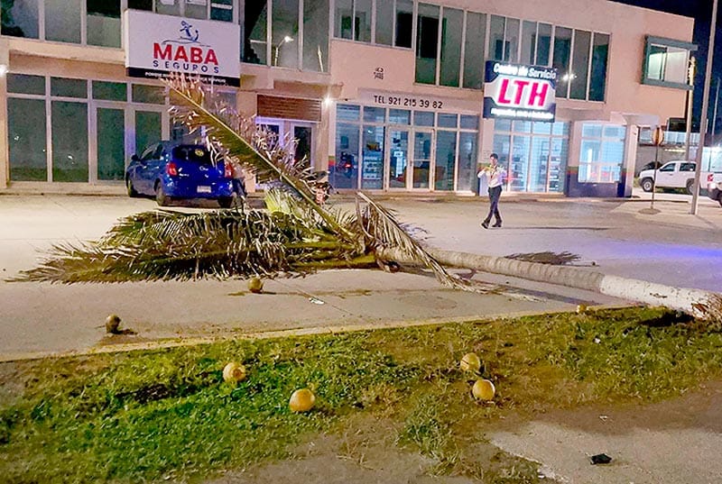 Elementos de la Policía Municipal, así como rescatistas del grupo Alfa y Omega, acudieron para abanderar la zona y retirar los restos de la palmera a fin de restablecer el tránsito vehicular.