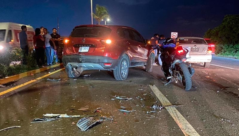 Los involucrados fueron un carro, de color blanco, tipo Vento, presuntamente manejado a exceso de velocidad, por lo que en primera instancia habría impactado a un automóvil, de color gris, marca Kia, que quedó encima del camellón y éste, chocó contra otra camioneta, marca Renault, de color rojo que estaba adelante.