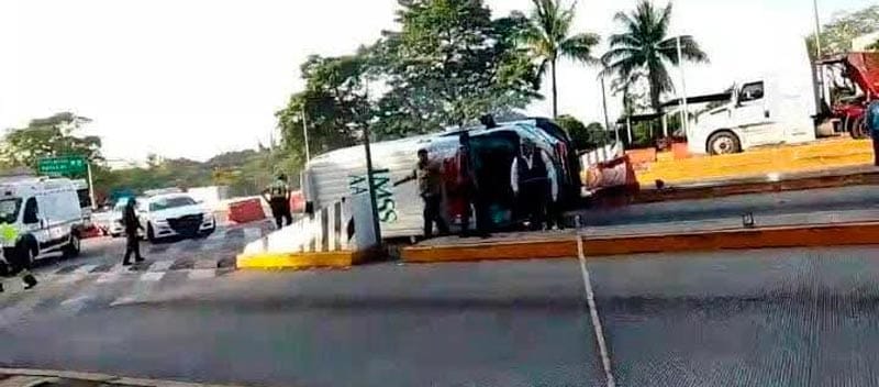 Cuitláhuac, Ver.(AVC).- Una ambulancia del Instituto Mexicano del Seguro Social (IMSS) volcó la mañana de este miércoles 16 de julio en la caseta de cobro 116 de Cuitláhuac, ubicada en el kilómetro 14 de la autopista 150D Córdoba–Veracruz, a la altura del tramo Córdoba–La Tinaja.
