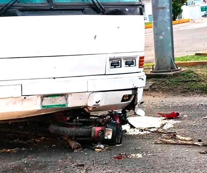 TRES CHAVOS EN UNA MOTOCICLETA SE PASARON EL ALTO Y SE ESTRELLARON CONTRA UN AUTOBÚS