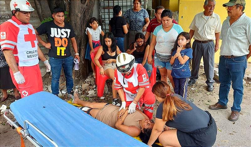 Minutos más tarde, paramédicos de la Cruz Roja llegaron rápidamente al sitio para brindar asistencia a las jóvenes lesionadas, dónde una de ellas se encontraba tendida en el suelo a consecuencia de dolor intenso en la cadera tras el impacto.