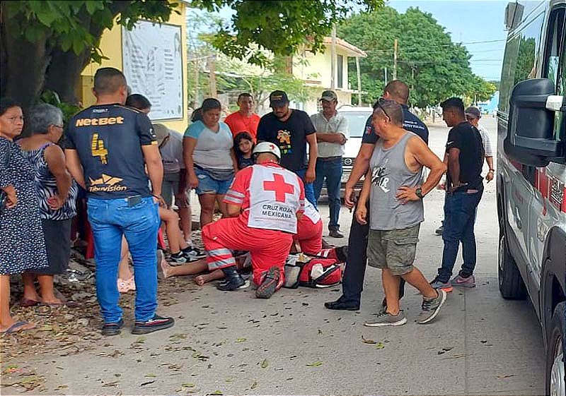 La conductora de la motoneta Italika azul, en un intento por dirigirse a las vías del tren, perdió el control al tomar una curva presuntamente a alta velocidad, provocando el derrape que terminó en una colisión con un árbol.