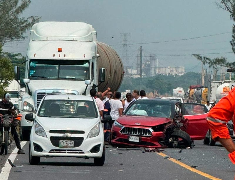 Un aparatoso accidente entre una pipa y un automóvil particular provocó severo caos vial ayer por la tarde en la carretera Costera del Golfo, a la altura del entronque con la autopista Nuevo Teapa – Cosoleacaque.