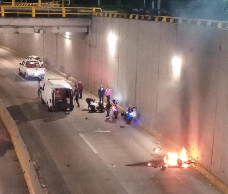 *Al momento del impacto el joven Humberto “N”, de 17 años quedó muerto junto al muro divisorio de concreto mientras la motocicleta salió proyectada hacia otros dos motociclistas