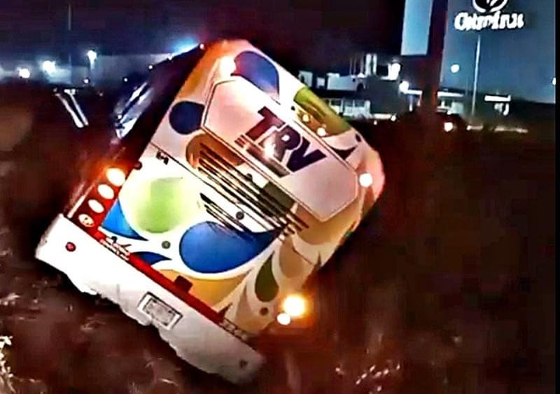 AUTOBÚS CAE EN ZANJA DESPUÉS DE SER IMPACTADO POR CONDUCTOR BORRACHO