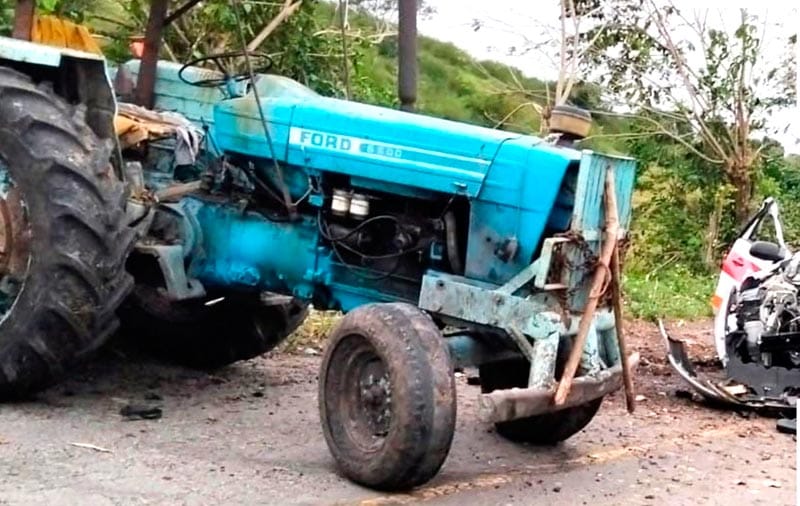 A unos metros del taxi, la policía localizó el tractor agrícola marca Ford, de color azul, con algunos daños, sin saber del destino del operador pues ya se había retirado.