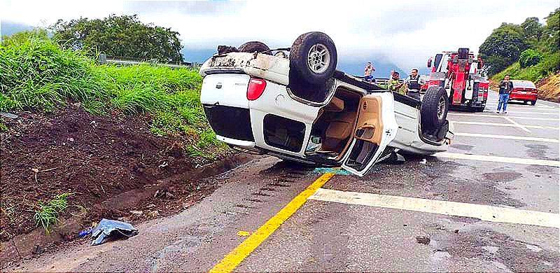 El percance se suscitó al filo de las 15:15 horas de hoy domingo en el kilómetro 262 del tramo carretero Nogales- Ciudad Mendoza, cuando el conductor de la camioneta Chrysler Durango de color blanco y con placas YJU-215-B del Estado, perdió el control y volcó sobre un montículo de tierra y el carril de alta velocidad de la vía rápida 2100.