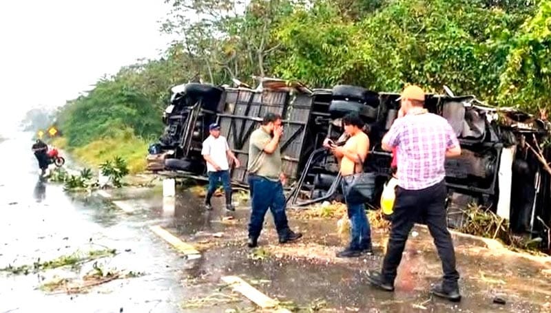 A las 12:20 horas, operadores de la línea de emergencias 911 reportaron la volcadura de un autobús a la altura de la desviación a Texistepec, con varias personas lesionadas.