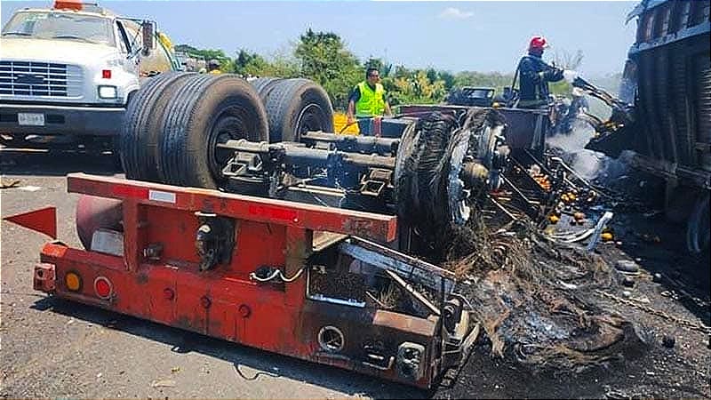 Un choque de frente e incendio entre un camión Torton cargado con naranjas y un tractocamión acoplado a doble semirremolque tipo plataforma, ocurrido sobre la autopista La Tinaja-Cosoleacaque en el municipio de Tierra Blanca, dejó saldo de un operador muerto, carbonizado, además un lesionado.