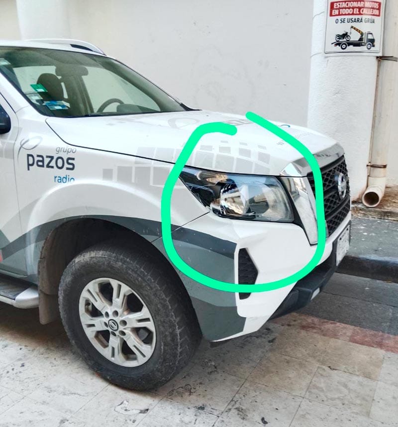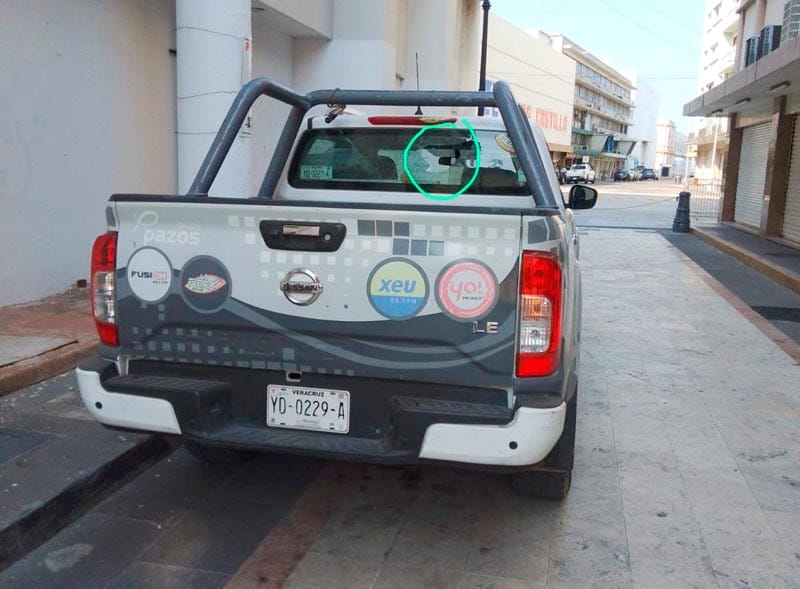 En el mismo Callejón Clavijero esquina con Callejón Ocampo, vandalizaron una camioneta Nissan Pick Up de una radiodifusora, a la que le rompieron el cristal del medallón, el parabrisas y una mica del fanal delantero derecho.