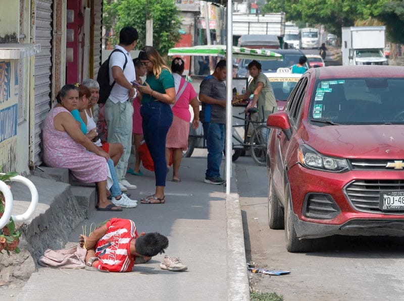 Los vecinos se unieron y logrando detenerlo en la esquina con la calle de J.B. Lobos, incluso tuvieron que amarrarlo de pies y manos, pues andaba violento, aventando mordidas y rasguños.