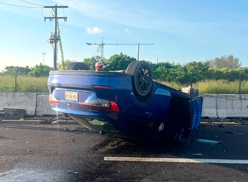 El automóvil se desvió hacia la izquierda, impactando contra el muro de contención de concreto y terminando volcado con las llantas hacia arriba. Testigos del accidente acudieron rápidamente al sitio para brindar ayuda.