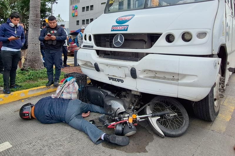 En céntricas calles de la ciudad de Veracruz, un motociclista fue impactado por un camión urbano, de la ruta 6, al cual quiso ganarle el paso, quedando lesionado.