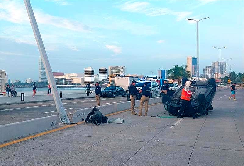 En la curva del Penacho del Indio, en fraccionamiento Costa de Oro, perdió el control de la unidad y se impactó contra el murito de concreto del camellón central y después contra una luminaria.