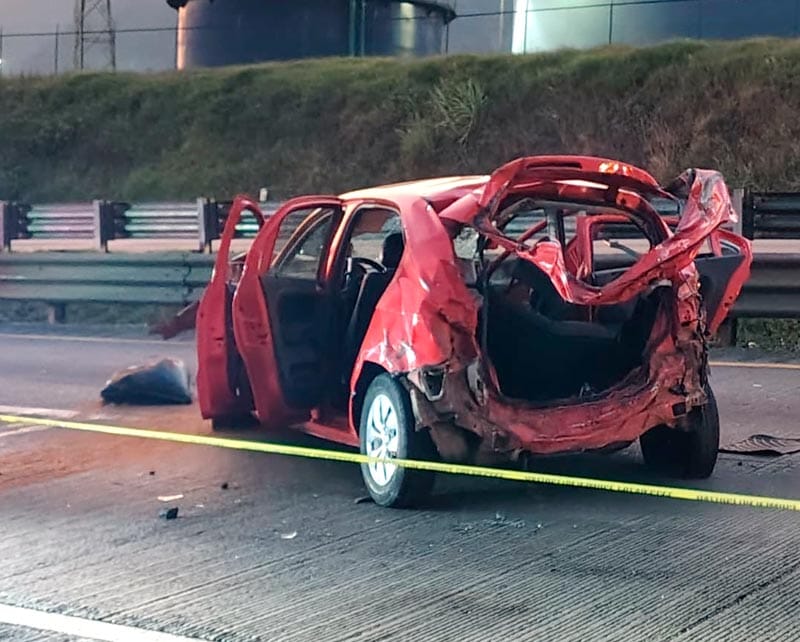 De acuerdo con los primeros reportes, la conductora de un Volkswagen Gol hatchback perdió el control del vehículo y se impactó contra las barreras metálicas de contención, lo que provocó la volcadura sobre el carril de alta velocidad.